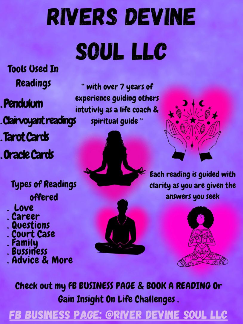 I'm here to help you reach your goals by booking with me, whether you are feeling unaligned or you are wanting to try something new, or just need a confirmation. Then we got you covered. I invite you to explore your options!